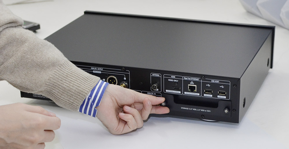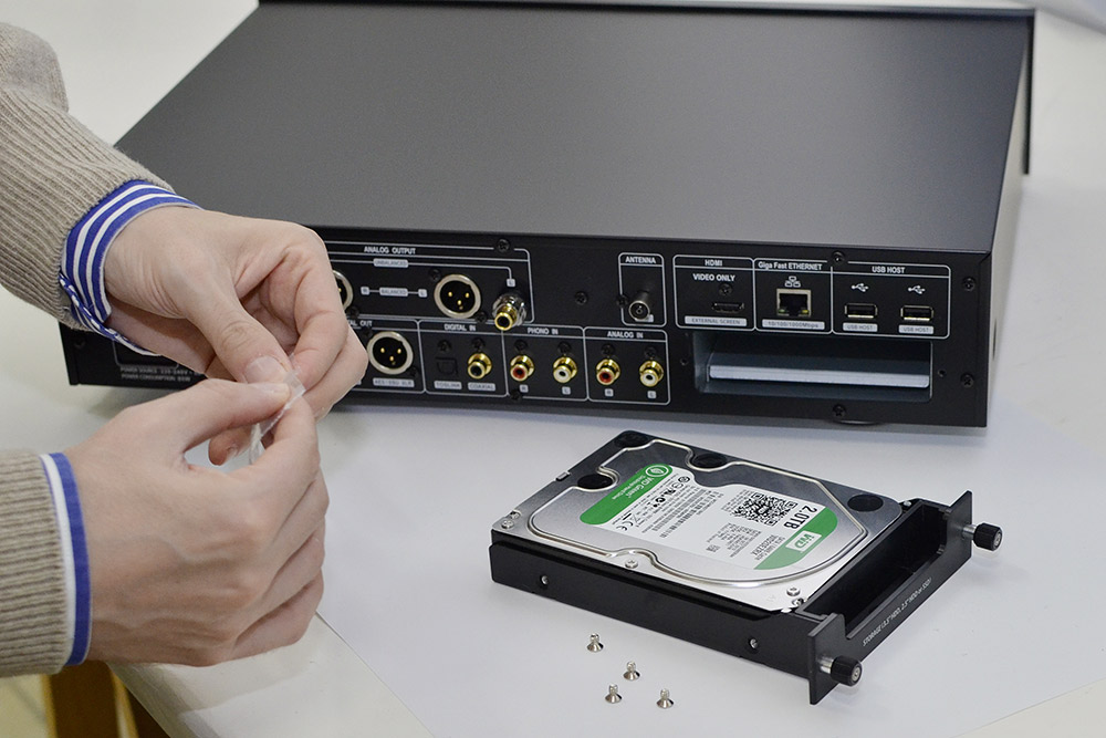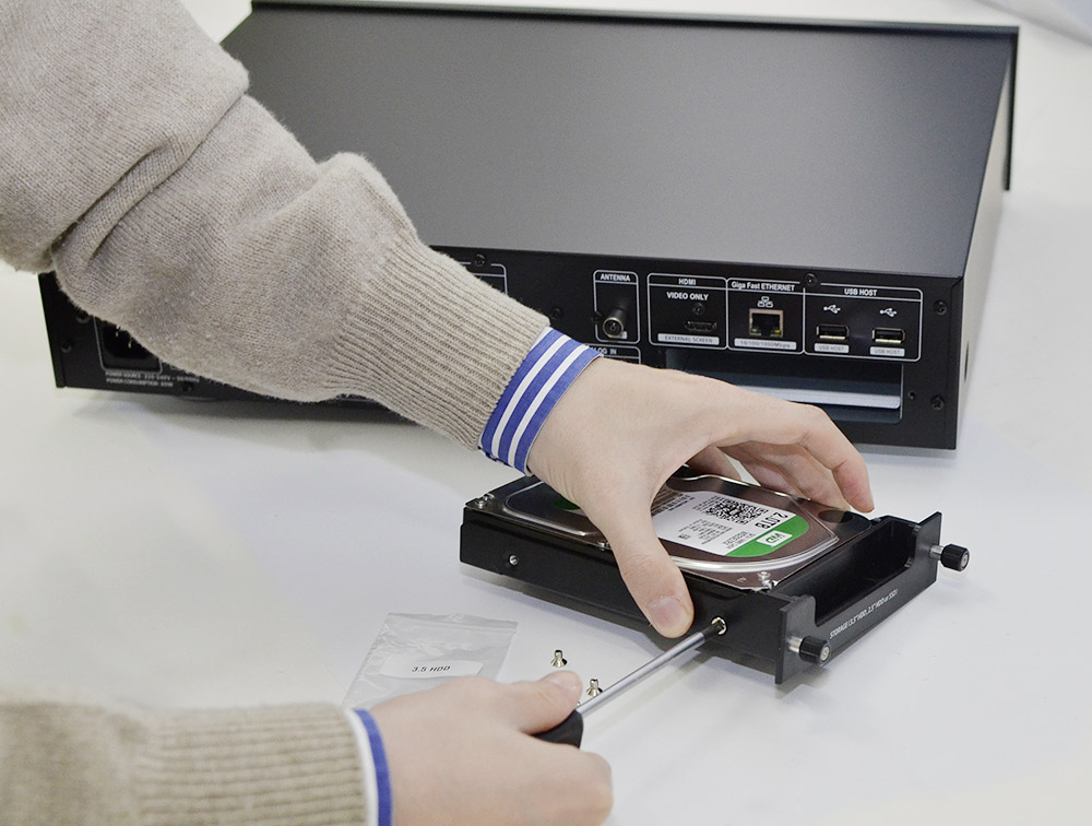 4) Adagiare l’HD nel cassettino. A corredo sono fornite le quattro viti per bloccarlo lateralmente. Due per lato.