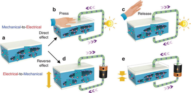 In questo caso la notizia ci arriva da Nature Communications del 16 maggio 2017, che rende noto il lavoro svolto dai ricercatori della Michigan State University e del Georgia Institute of Technology, un nutrito gruppo di specialisti in ingegneria meccanica, elettrotecnica, informatica, tecnologia dei materiali, ecc., che hanno studiato l’applicazione di un particolare materiale definito FerroElectret NanoGenerator (FENG) nella trasduzione di suoni e segnali audio, dimostrandone in concreto l’efficacia nella registrazione e riproduzione di musica. Il FENG si presenta come una pellicola spessa qualche decina di micron, capace di interagire alle sollecitazioni meccaniche generando una tensione elettrica tra le sue due superfici o, al contrario, producendo energia meccanica sotto forma di onde sonore se sottoposta ad un segnale elettrico. Sfruttando questa proprietà è possibile realizzare microfoni/altoparlanti FENG senza l’uso di campi magnetici né avvolgimenti elettrici né alimentatori esterni.