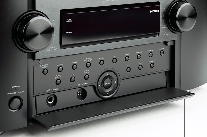 Quando si riproduce materiale codificato in MP3 si ha a disposizione una particolare funzione, denominata M-DAX (Marantz Digital Audio Expander) che si pone l’obiettivo un po’ ambizioso di supplire alla perdita di qualità provocata dalla compressione audio e che può essere attivata con due diverse intensità. Nella fase di installazione è prevista la possibilità di avvalersi dell’autocalibrazione che consente di determinare in modo automatico tutti i principali parametri che occorrerebbe altrimenti impostare manualmente (ad esempio numero e tipo dei diffusori presenti nell’impianto, loro distanza dal punto di ascolto e loro livello di emissione, ecc.).
