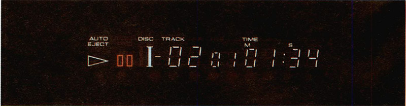 Il display fluorescente è ricco di informazioni: disco selezionato, traccia, index, tempo trascorso dall’inizio del brano o mancante al completamento della traccia, del disco o del programma, numero dei brani programmati e durata complessiva del programma, più le consuete segnala zioni sullo stato di funzionamento.