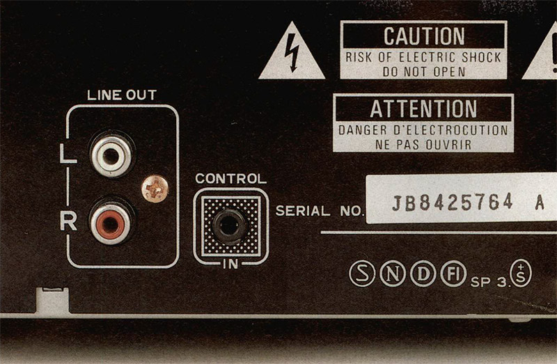Accanto alle boccole di collegamento al preamplificatore è posizionata una presa per connettere l’apparecchio ai coordinati Pioneer della serie SR, che rendono possibile il telecomando centralizzato di molte funzioni del CD.