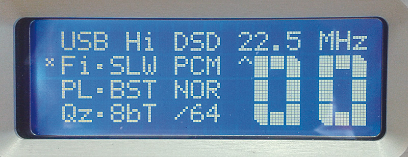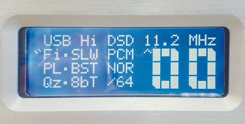 Il DAC che ci ha permesso di effettuare misure e ascolti anche in DSD256 è presentato nella sezione AUDIOcostruzione (pag. 123). Qui vediamo la schermata del display che indica la frequenza di 11,2 MHz, corrispondente al DSD256, ma poi ci siamo spinti anche oltre…