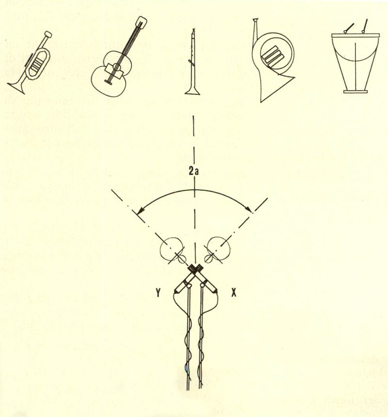 Questa tecnica di ripresa dei suoni viene chiamata «X-Y»: esiste comunque un’altra disposizione dei microfoni, denominata «MS» (Mid-Side), che permette di ottenere un risultato identico.